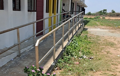 The ramp provides safe and accessible movement for individuals with mobility challenges, including wheelchair users. Designed with proper slope and handrails, it ensures barrier-free access to buildings, promoting inclusivity and convenience for all.