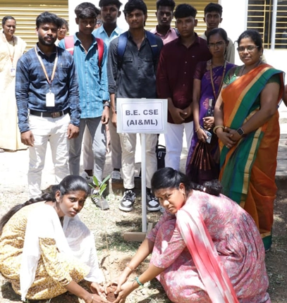 Sudharsan Engineering College organized an extension activity on 25.08.2025 through a tree plantation drive inside the campus