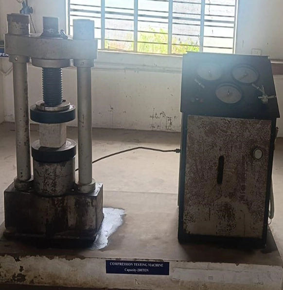 The compressive strength test of concrete cubes is carried out to assess the load- bearing capacity and overall quality of concrete used in construction. As per IS 516:1959, this test determines whether the concrete mix meets the design strength specified for structural safety. The standard testing is conducted on 150 mm concrete cubes after 7 and 28 days of curing. For M25 grade concrete, the minimum required 28-day strength is 25 N/mm². These results are compiled and submitted as part of the material quality verification for approval in private and government construction projects.